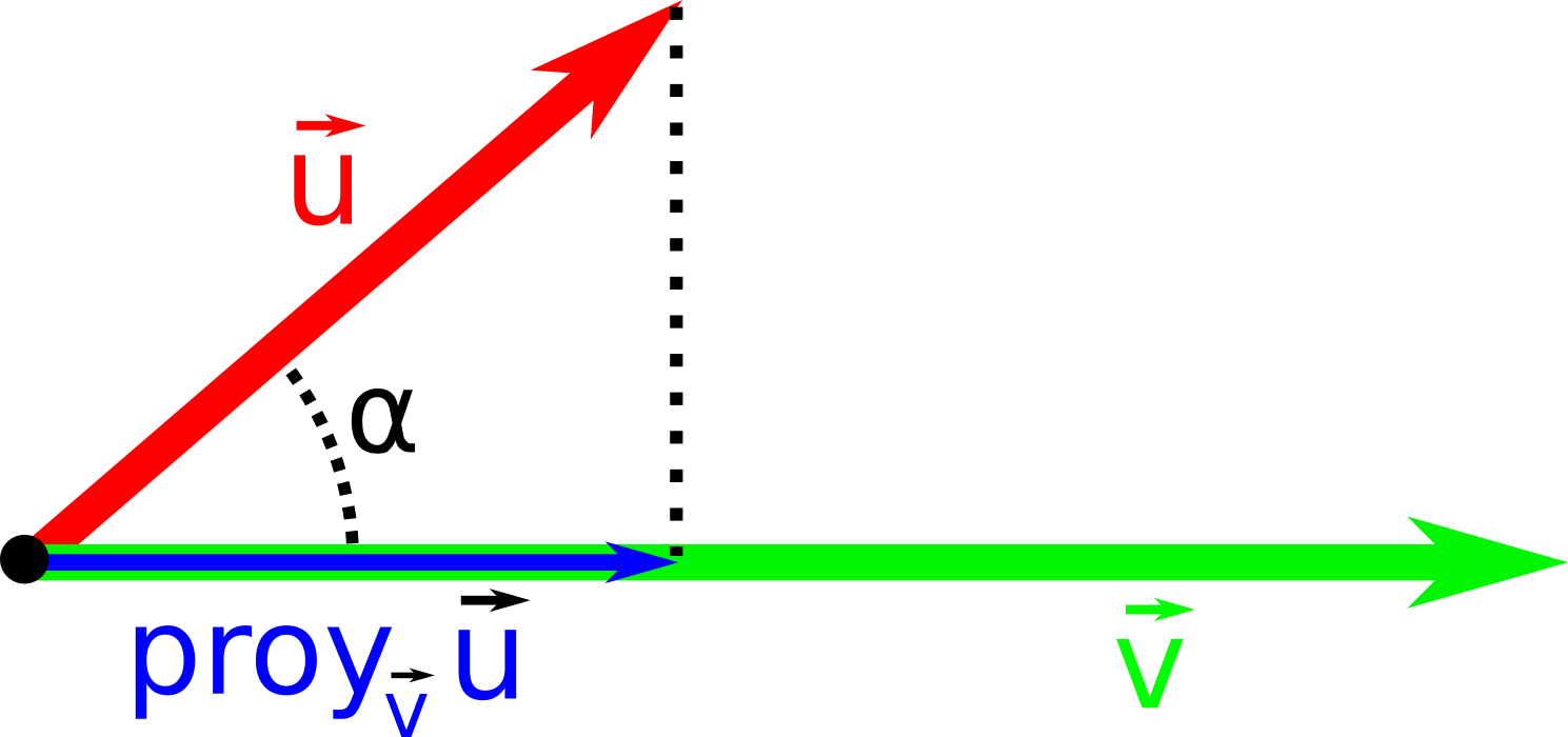 \[ | proy_{\vec{v}} \vec{u} | = \frac{|\vec{v} \cdot \vec{u}|}{|\vec{v}|} \]