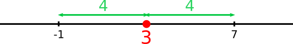 \[E(3,4) =\{x \in \mathbb{R} / |x-3| \lt 4 \} = (-1, 7)\]