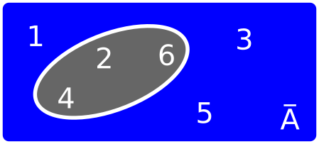 • \[ A = \] "sacar un número par" \[= \{\omega_2, \omega_4, \omega_6\} \]