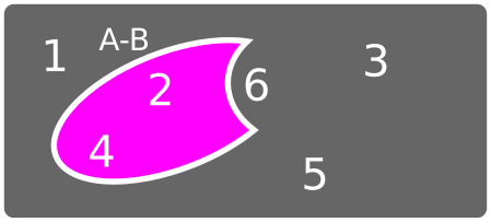 • Diferencia \[ A - B = A \cap \overline{B} \]