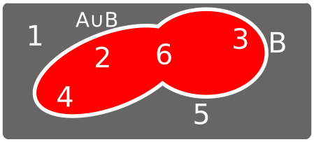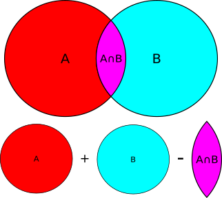 • \[P(A \cup B) = P(A) + P(B) - P(A\cap B)\]